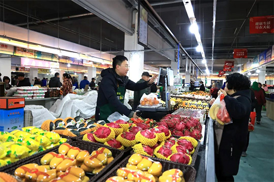 廣場內(nèi),農(nóng)樂生鮮老板謝聰在水果攤位上,忙得不可開交,“攤位搬進室內(nèi)后,不用風吹日曬了,環(huán)境更好了,地下鋪得瓷磚方便清潔,水果損耗比在露天擺攤減少了不少,老百姓吃著更放心?!敝x聰邊打秤計價、邊說,廣場還提供了倉庫,可以存放貨品,方便又省事。